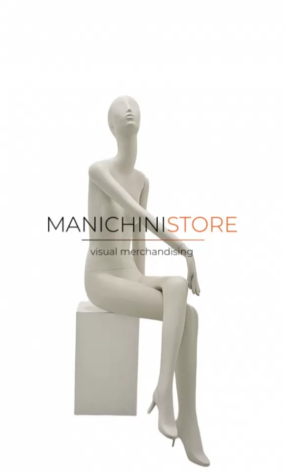 Bellissimo manichino donna della collezione Eclissi, in vetroresina verniciato in color bianco latte opaco.
