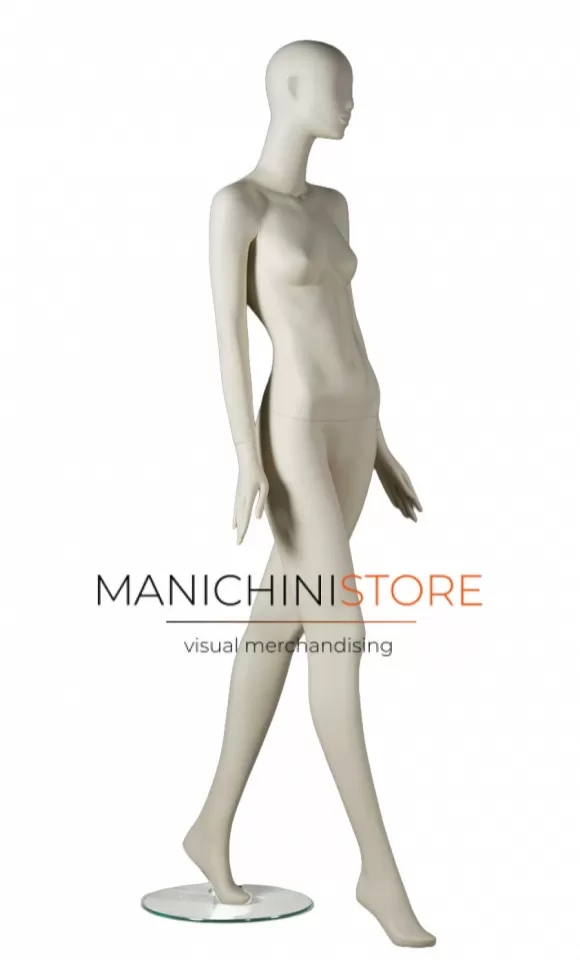 Bellissimo manichino donna della collezione Eclissi, in vetroresina verniciato in color bianco latte opaco.