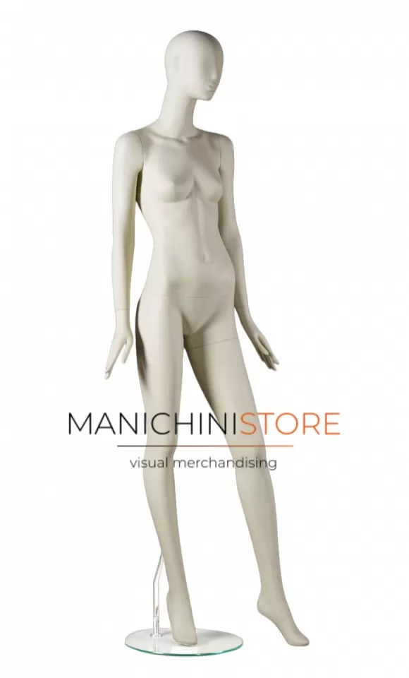 Bellissimo manichino donna della collezione Eclissi, in vetroresina verniciato in color bianco latte opaco.
