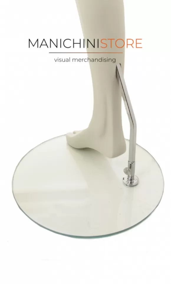 La cura dei dettagli e le linee sinuose ed affusolate caratterizzano questa collezione dai lineamenti appena accennati, accessoriata di una base tonda in vetro temperato del diametro di 38 cm con attacco al polpaccio per poter indossare qualunque tipo di calzatura.