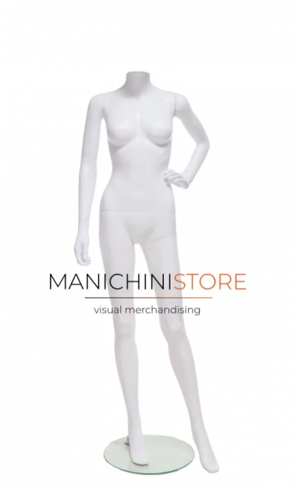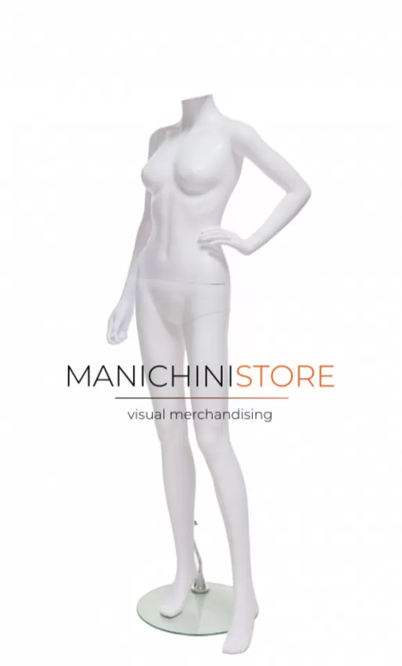 Bellissimo manichino donna realizzato interamente in plastica bianca riciclabile al 100%.