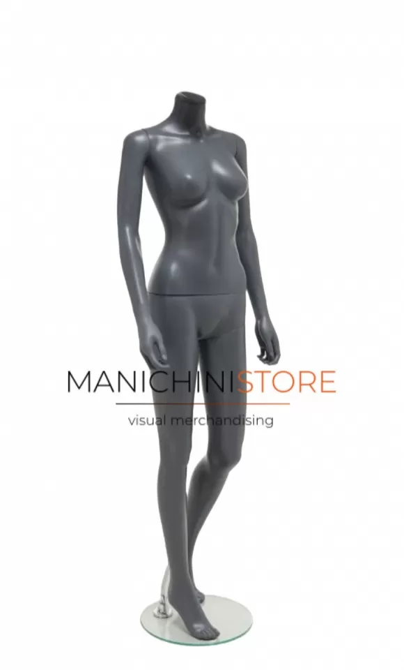 Bellissimo manichino donna realizzato interamente in plastica color grigio antracite, riciclabile al 100%.