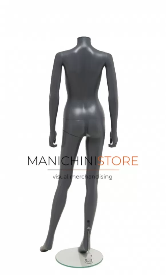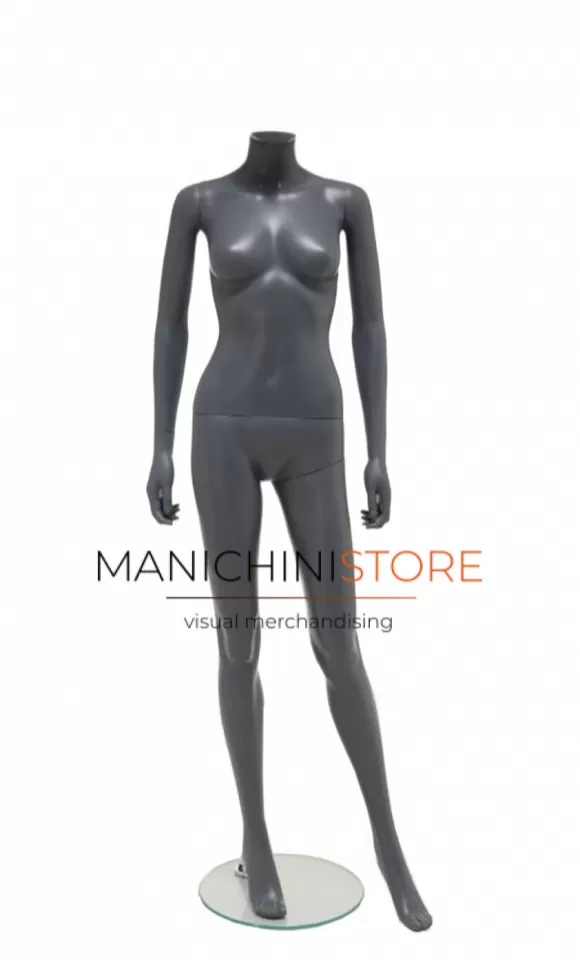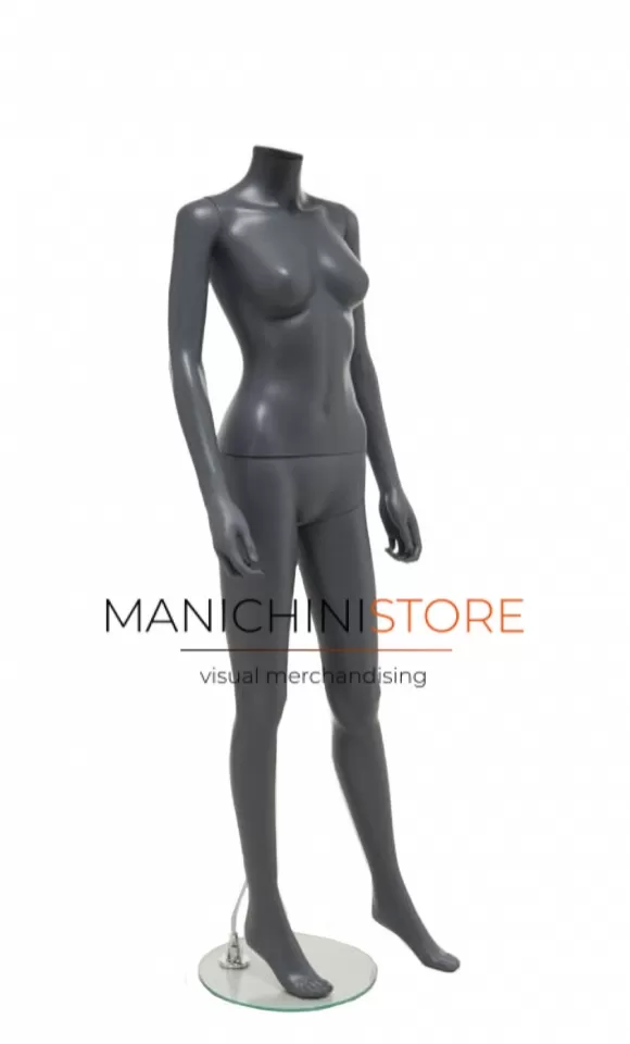 Bellissimo manichino donna realizzato interamente in plastica color grigio antracite, riciclabile al 100%.