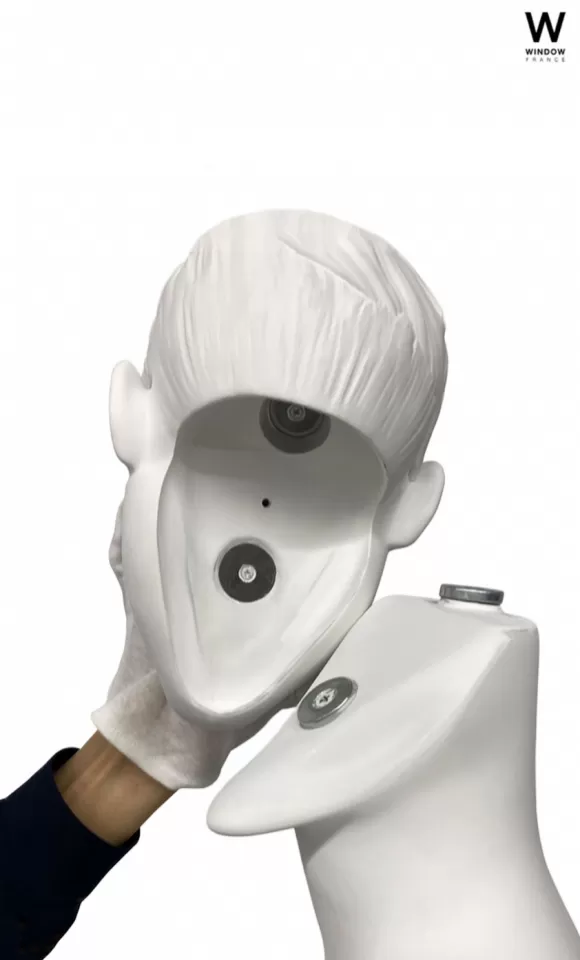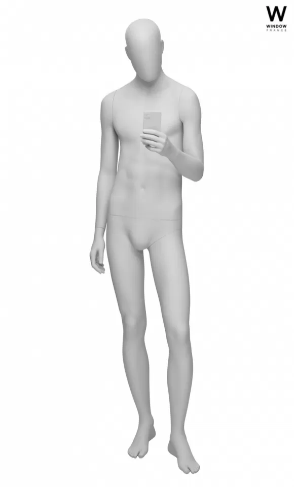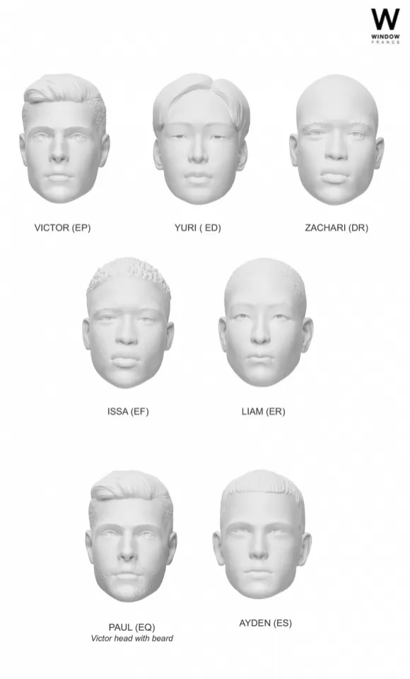 Il manichino viene presentato con la testa a uovo ma è a disposizione un'ampia gamma di teste con volti e tagli uomo, che grazie al sistema magnetico rimovibile permette di abbinare le pose con i volti desiderati.