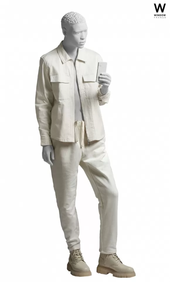 Bellissimo manichino uomo della collezione Citizens, in vetroresina vernicata in bianco opaco. Questa collezione, progettata sia per l'abbigliamento casual che per quello elegante, è completamente personalizzabile: il manichino è infatti dotato di base tonda in vetro temperato del diametro di 42 cm, ma sarà possibile anche aggiungere la base quadrata in metallo.