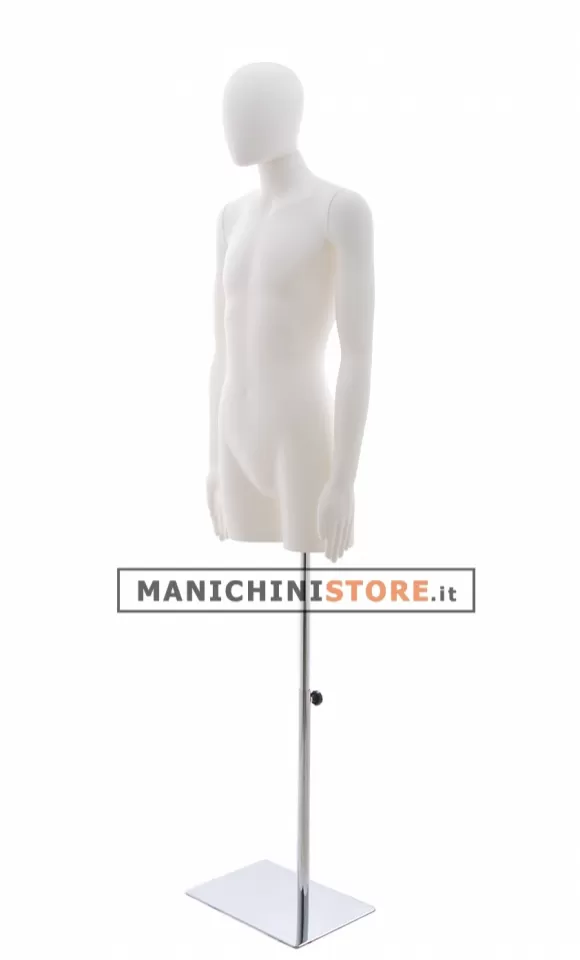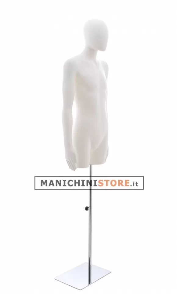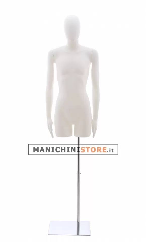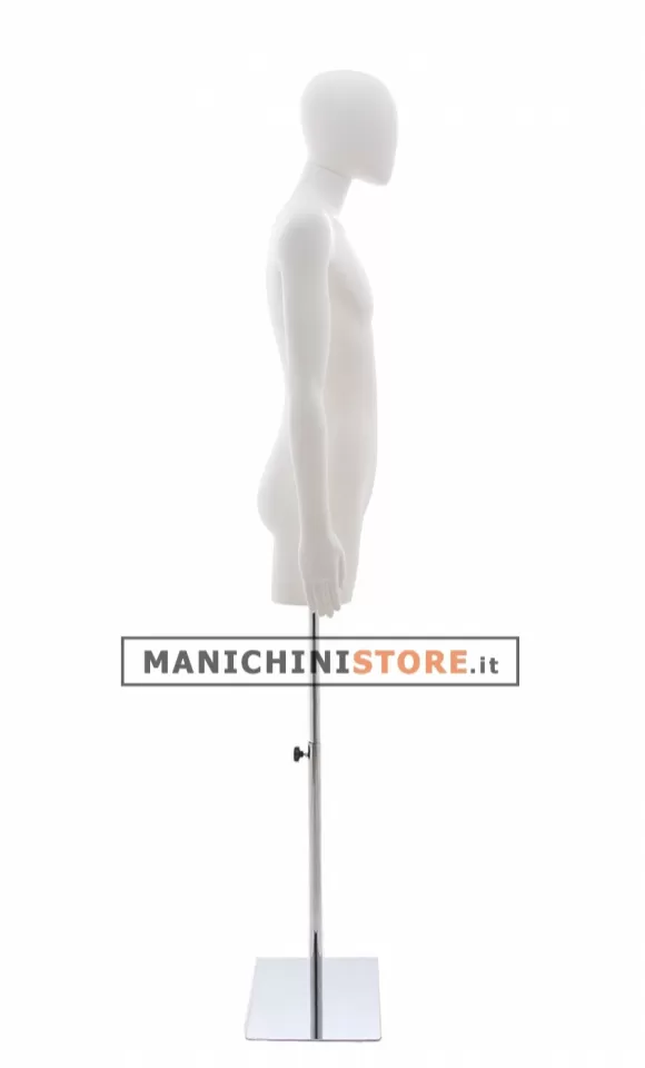 Il busto bambino è dotato di attacco alla gamba ed è accessoriato di base rettangolare in acciaio cromato regolabile in altezza (cod. BA06CH).