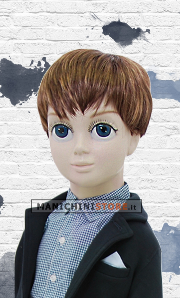 Bellissimo manichino bambino dalla Collezione "Rebel Kids" con parrucca realizzato in vetroresina e verniciato color carne.