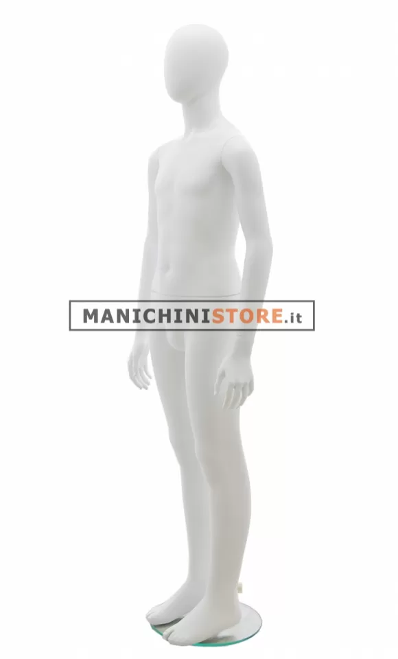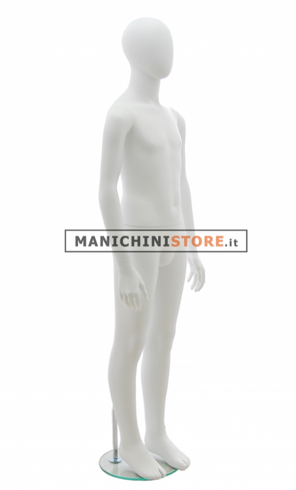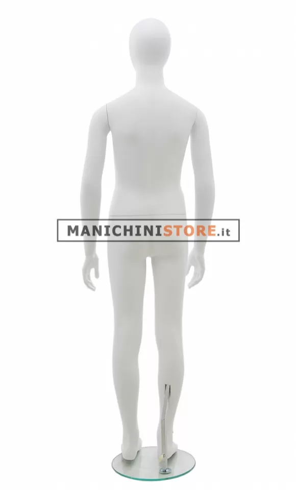 Quello qui proposto è il manichino bambino testa a uovo 10-12 anni. Questo articolo, realizzato in vetroresina verniciata in bianco opaco, è dotato di una base tonda in vetro temperato dal diametro di 30 cm. Dotato di un pratico attacco al polpaccio avrete modo di esporre anche le calzature.