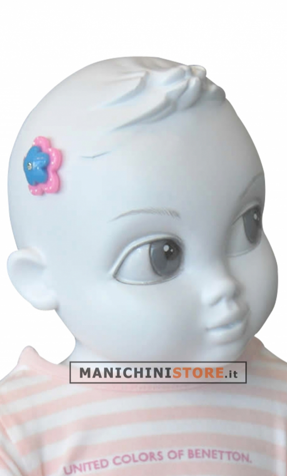 Il manichino neonato è unisex ed è possibile trasformarlo da femminuccia a maschietto togliendo il decoro sulla testolina.