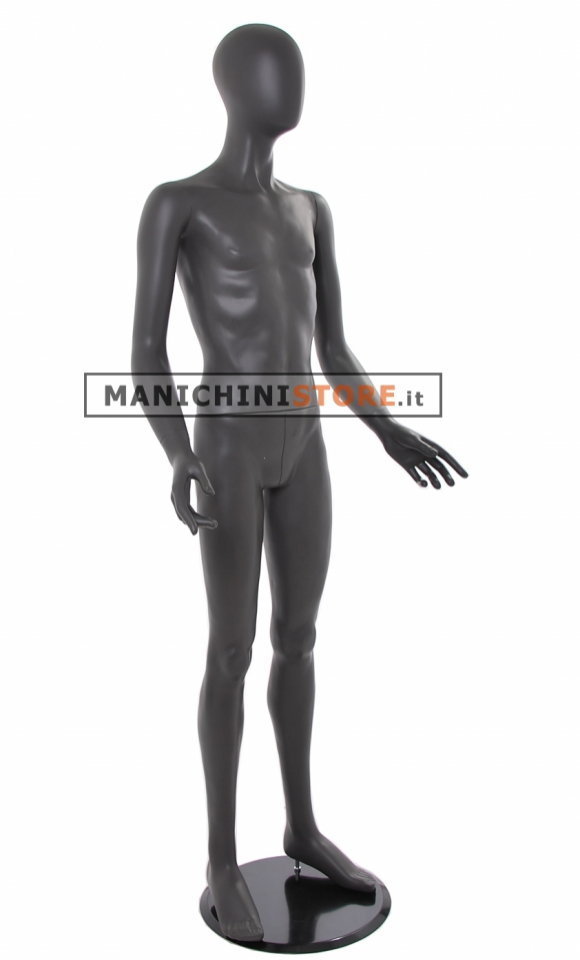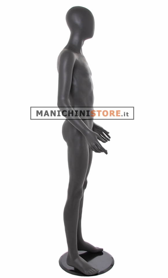 Manichino ragazzo di età 16 anni di fabbricazione Made in Italy costruito in soffiaggio plastico precolorato antracite.