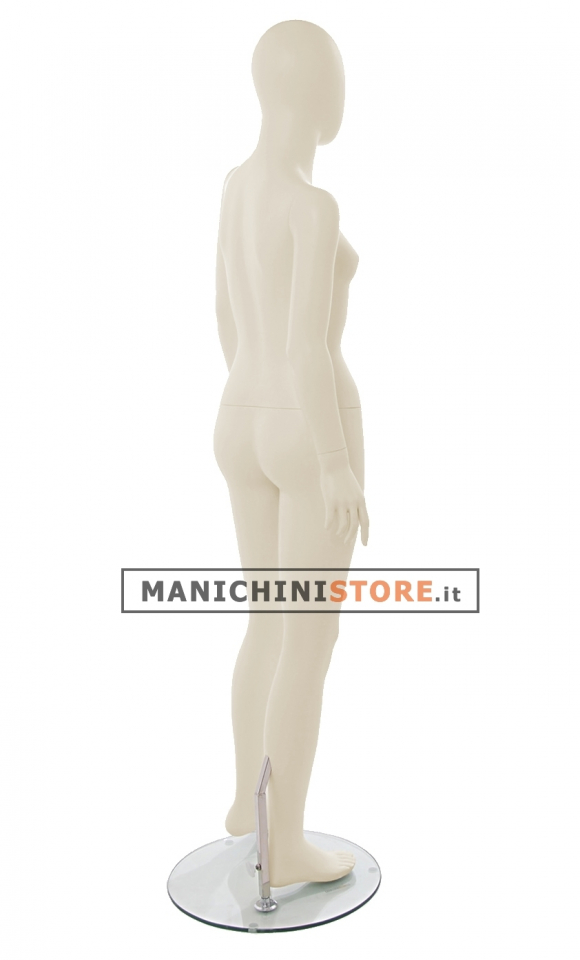 Il manichino è completo di base rotonda in vetro temprato del diametro di 38 cm con attacco al polpaccio per consentire di vestire le calzature.