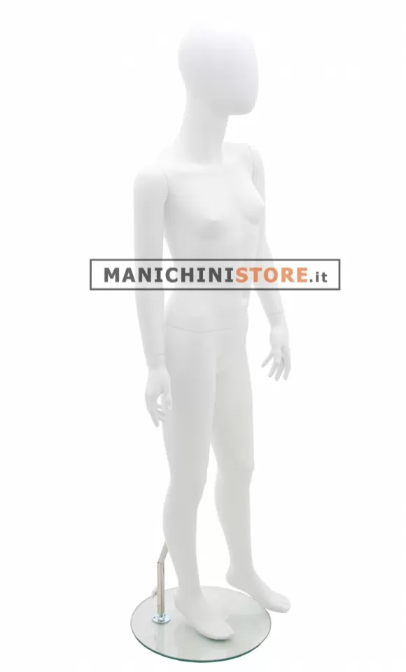 Bellissimo manichino bambina dalla testa a uovo di età 12-13 anni realizzato in vetroresina verniciato bianco opaco.