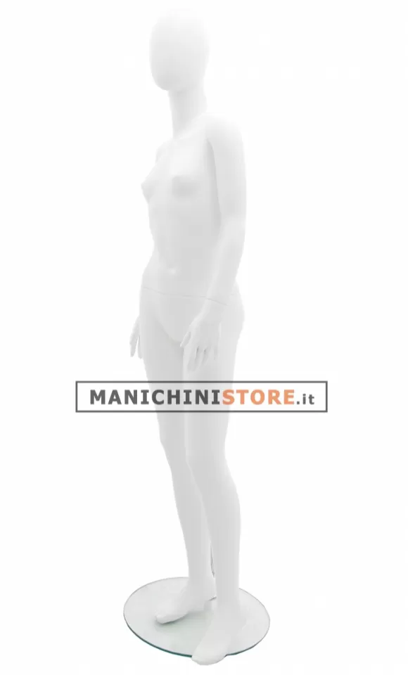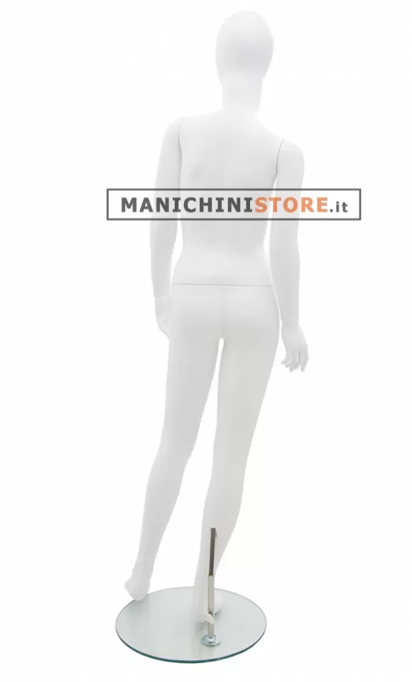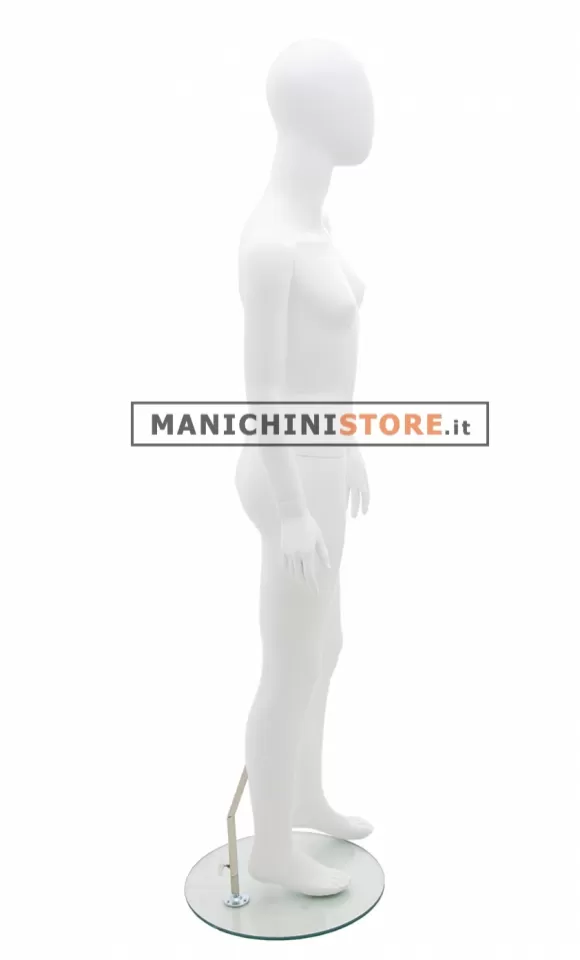 Il manichino è completo di base rotonda in vetro temprato del diametro di 38 cm con attacco al polpaccio per consentire di vestire le calzature.