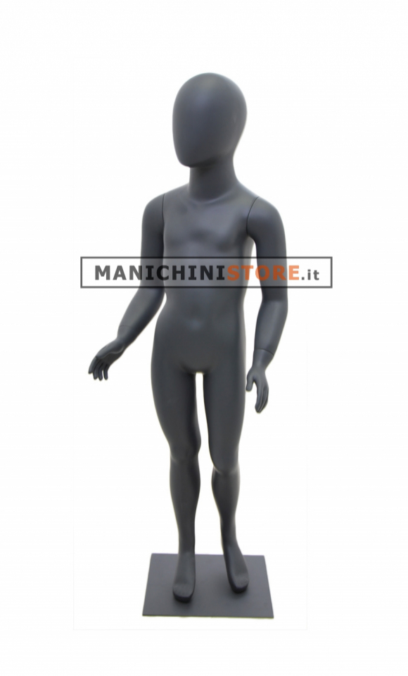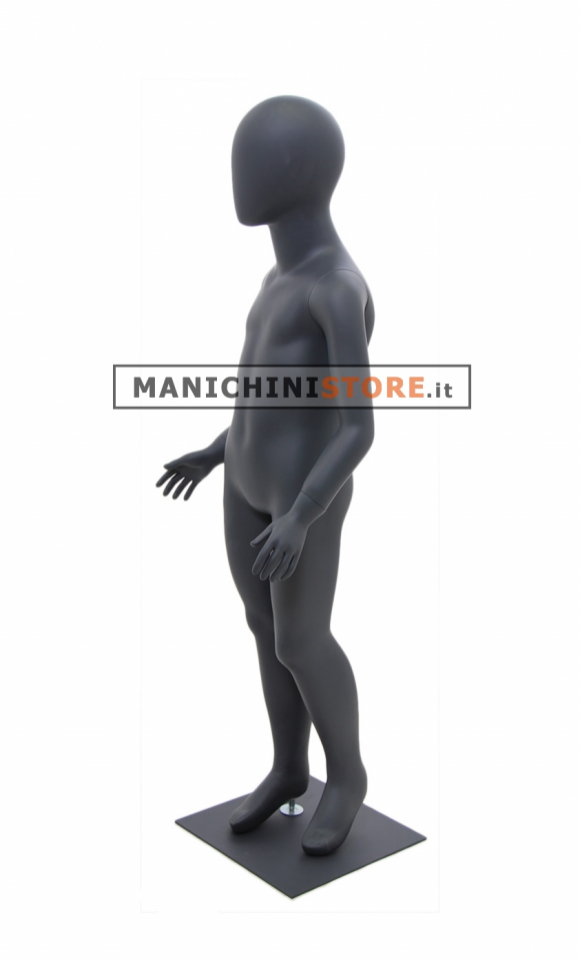 Fantastico manichino bambino dalla testa a uovo di età 4-5 anni realizzato in vetroresina verniciato antracite.