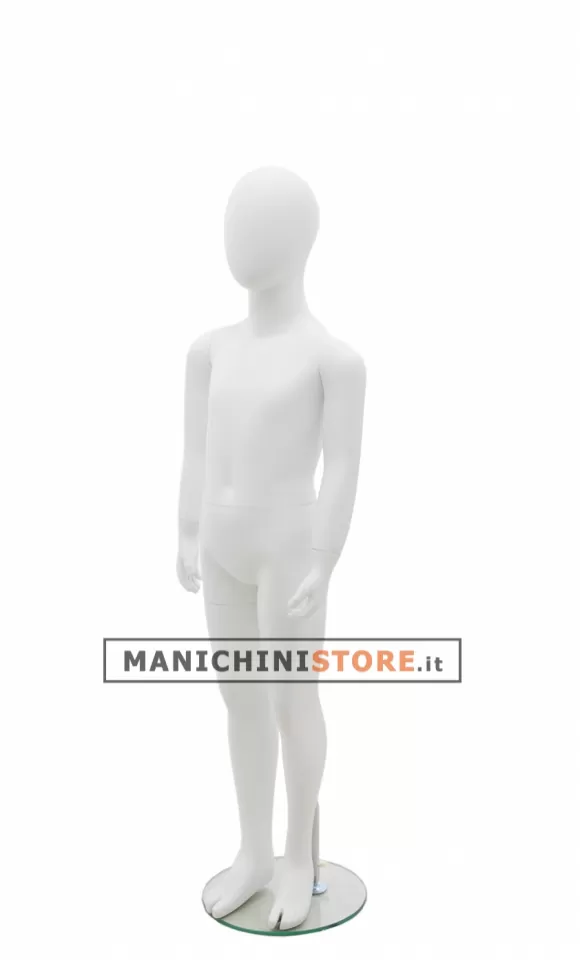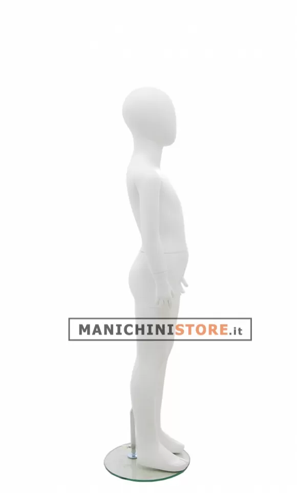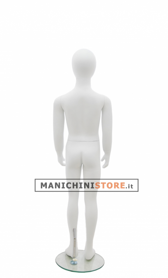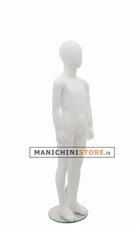Quello qui proposto è il manichino bambino testa a uovo 7-8 anni. Questo articolo, realizzato in vetroresina verniciata in bianco opaco, è dotato di una base tonda in vetro temperato dal diametro di 30 cm. Dotato di un pratico attacco al polpaccio avrete modo di esporre anche le calzature.