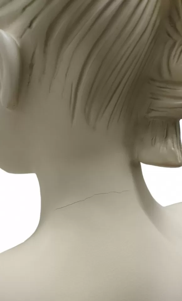 Il manichino presenta imperfezioni e piccole crepe di verniciatura, come da immagini di dettaglio.
