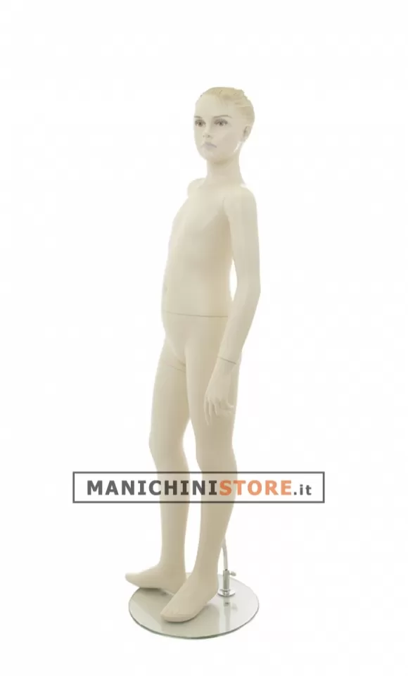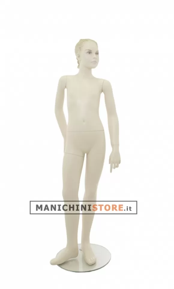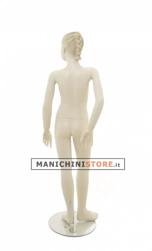 Il manichino bambina viene dotato di una base tonda in vetro temperato dal diametro di 35 cm con attacco al polpaccio per consentire l'esposizione delle calzature.