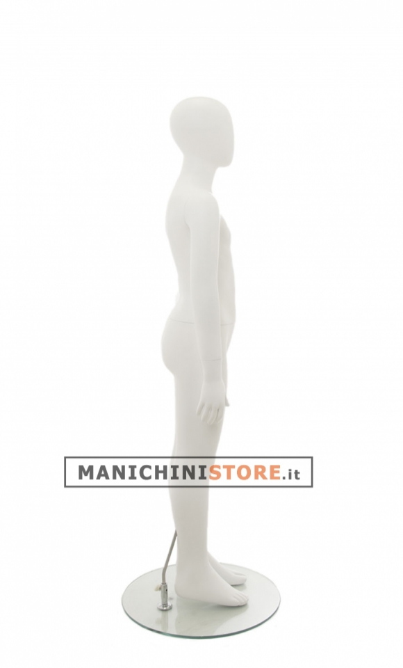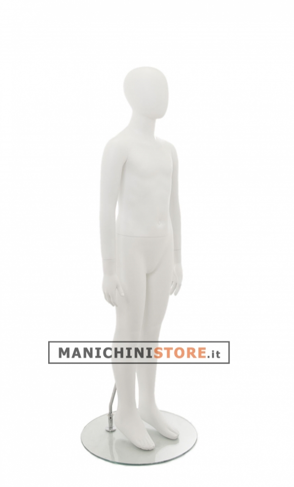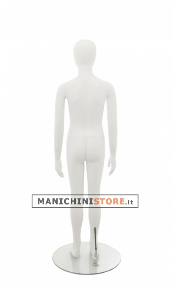 Il manichino bambino viene dotato di una base tonda in vetro temperato dal diametro di 42 cm con attacco al polpaccio per consentire l'esposizione delle calzature.