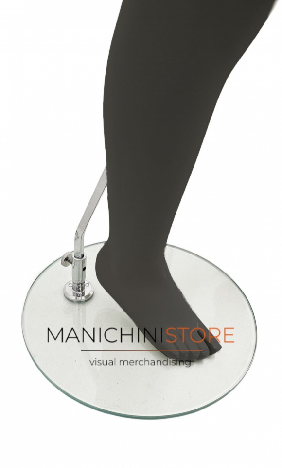 Il manichino è completo di base in vetro del diametro di 30 cm con attacco sia al polpaccio che sotto al piede.