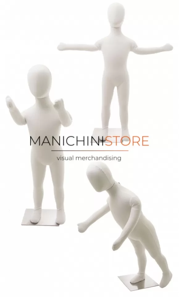 Pratico manichino bambino 2 anni flessibile con anima in metallo e rivestito in morbido tessuto.