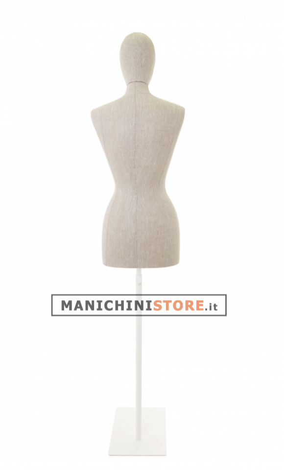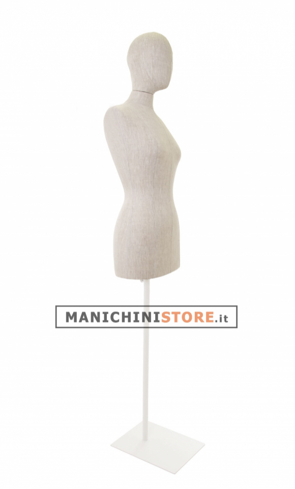 Bellissimo busto donna taglia 42 di produzione Made in Italy, realizzato in poliuretano espanso rivestito in puro lino naturale, completo inoltre di testa rivestita dello stesso tessuto.