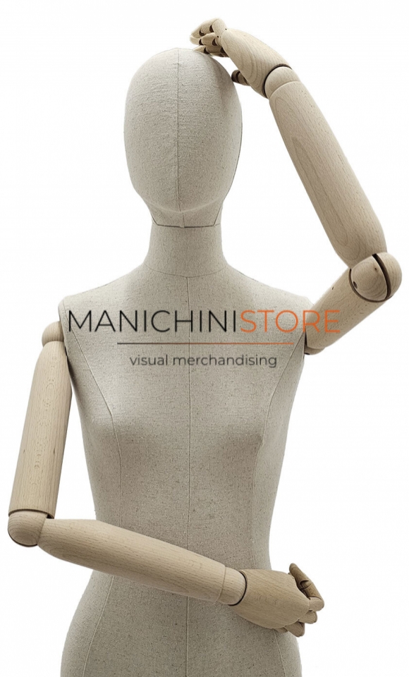 Il busto presenta testa orientabile, braccia snodabili e mani articolate in faggio naturale, capaci da adattarsi e modellarsi a seconda delle vostre esigenze ed è completo di una base nera 25x35 cm regolabile in altezza.