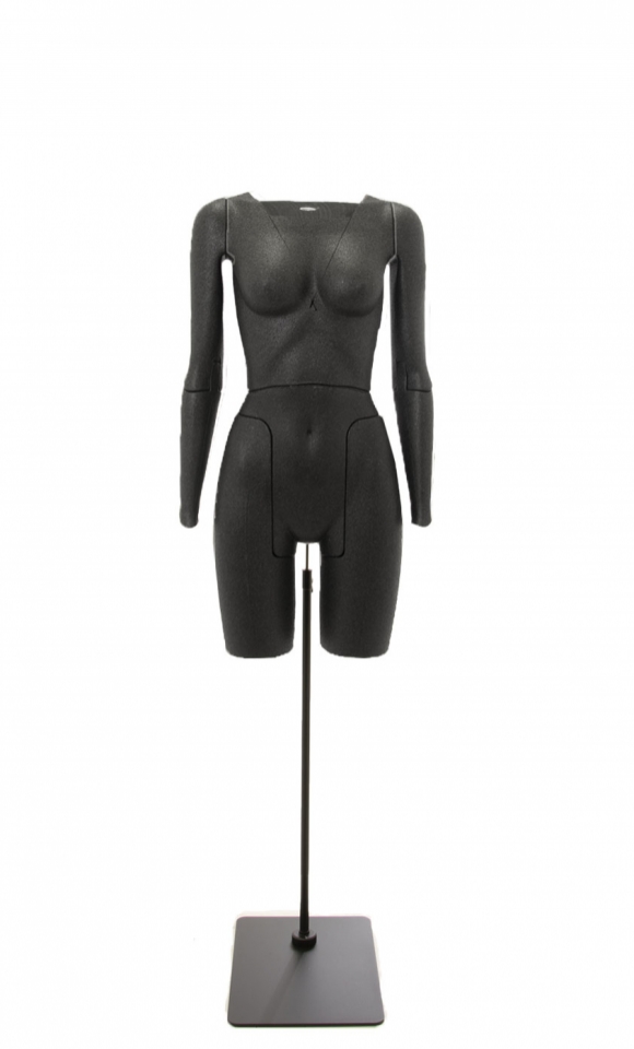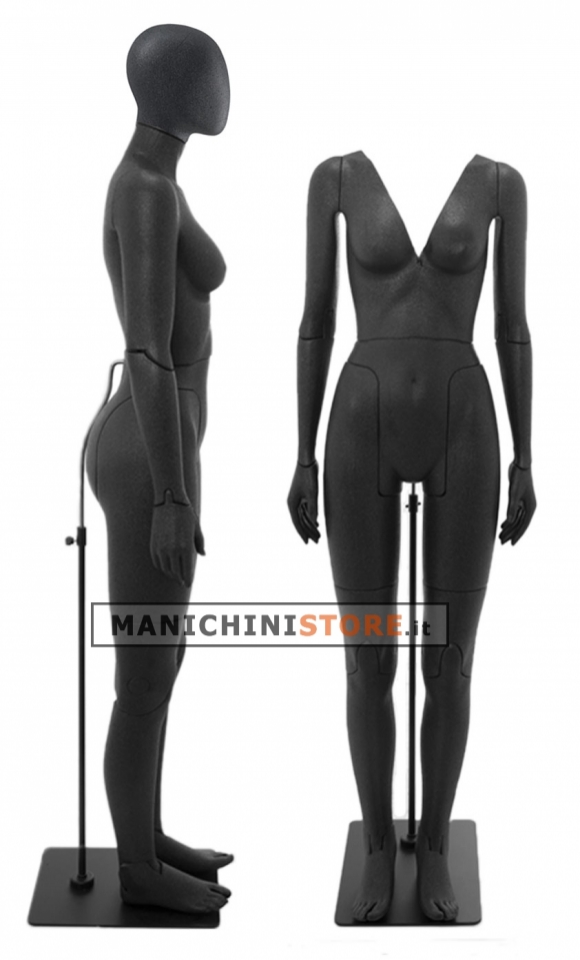 L'ottima qualità di fabbricazione rende il manichino donna dal color antracite particolarmente maneggevole e indicato a tutte le esigenze del vostro negozio grazie alle articolazioni snodabili con aggancio magnetico e scolli ricomponibili.