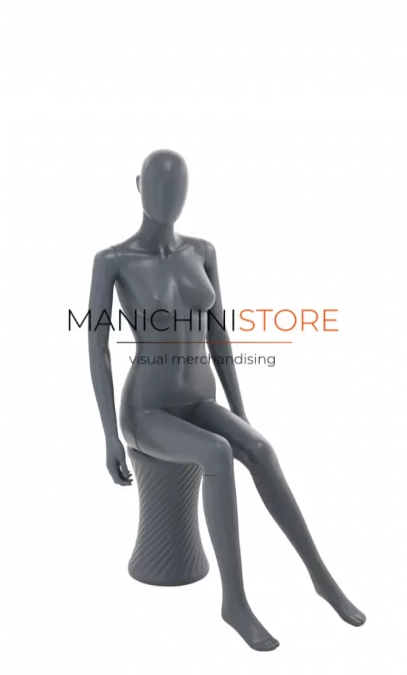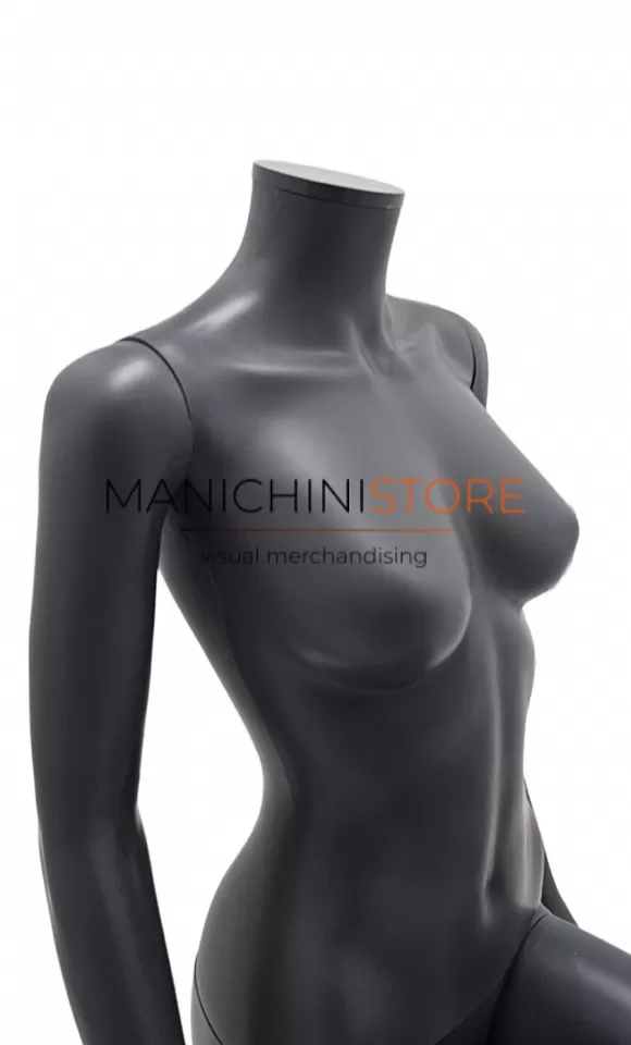 Bellissimo manichino donna realizzato interamente in plastica grigio antracite riciclabile al 100%.