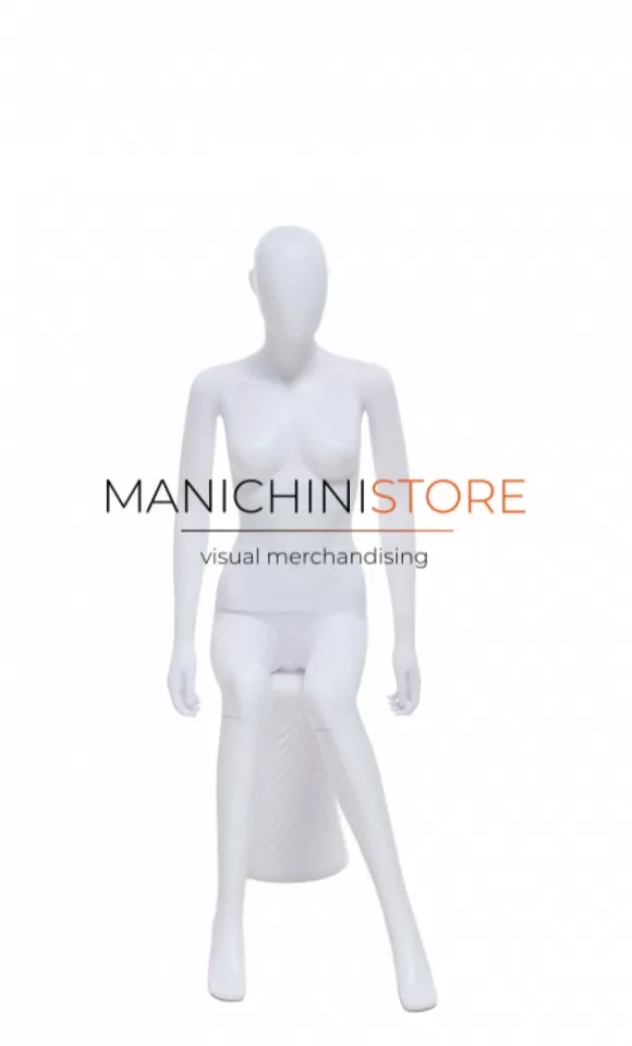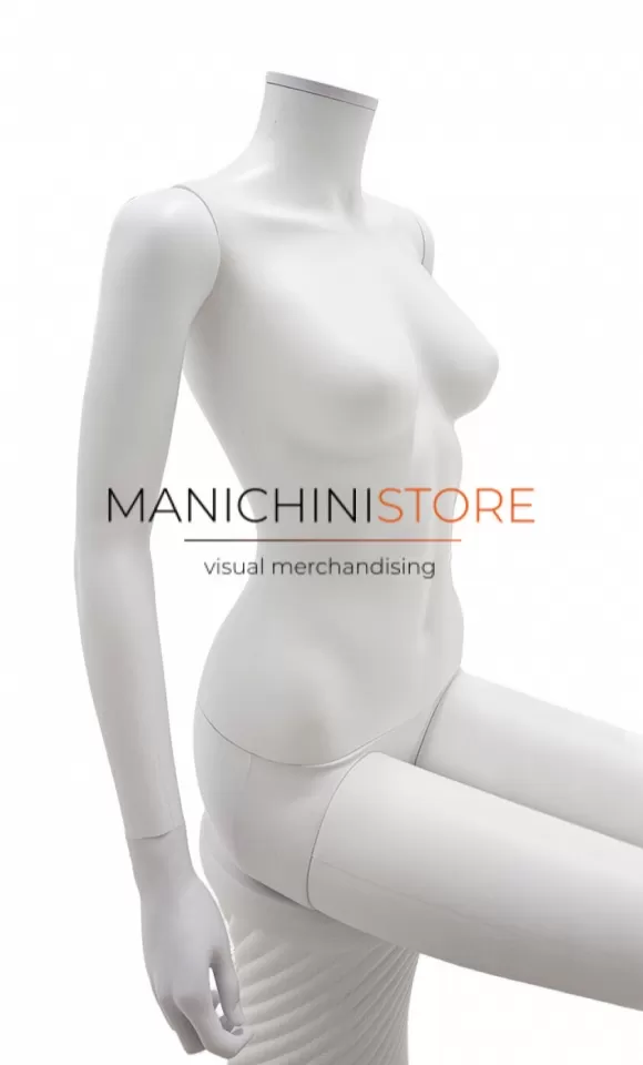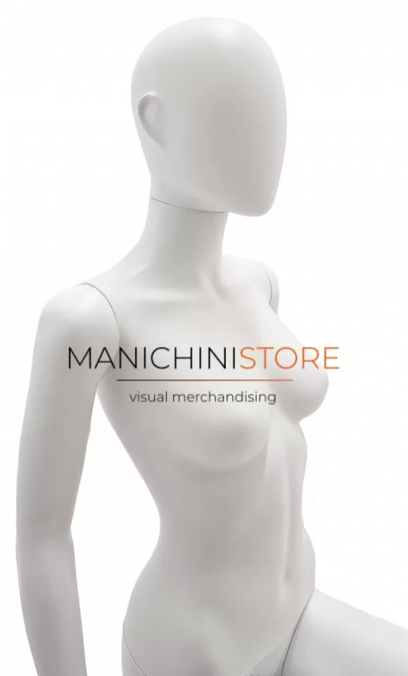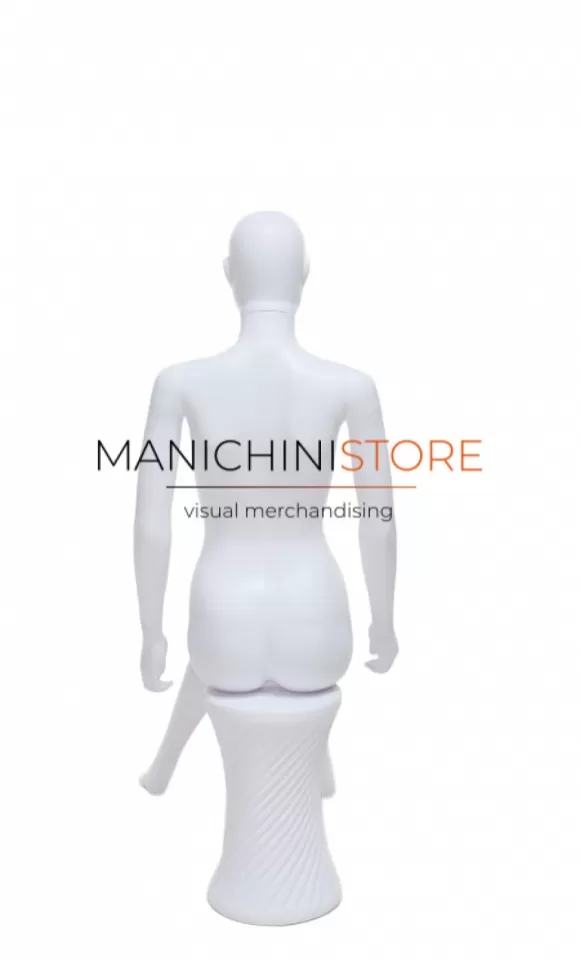 Bellissimo manichino donna realizzato interamente in plastica bianca riciclabile al 100%.