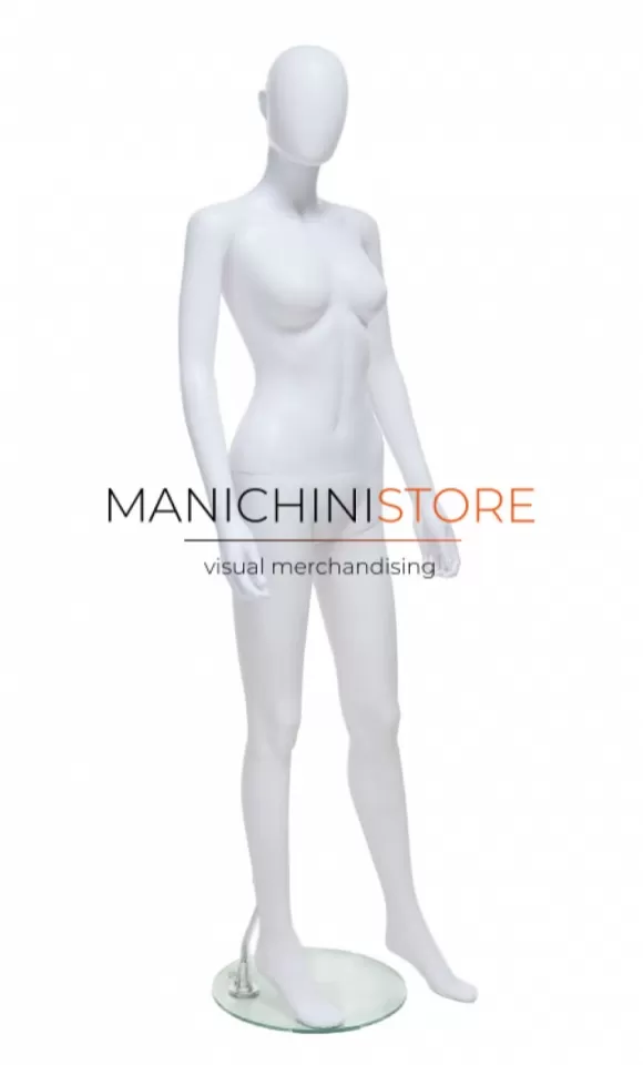 Bellissimo manichino donna realizzato interamente in plastica bianca riciclabile al 100%.