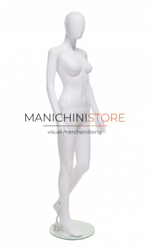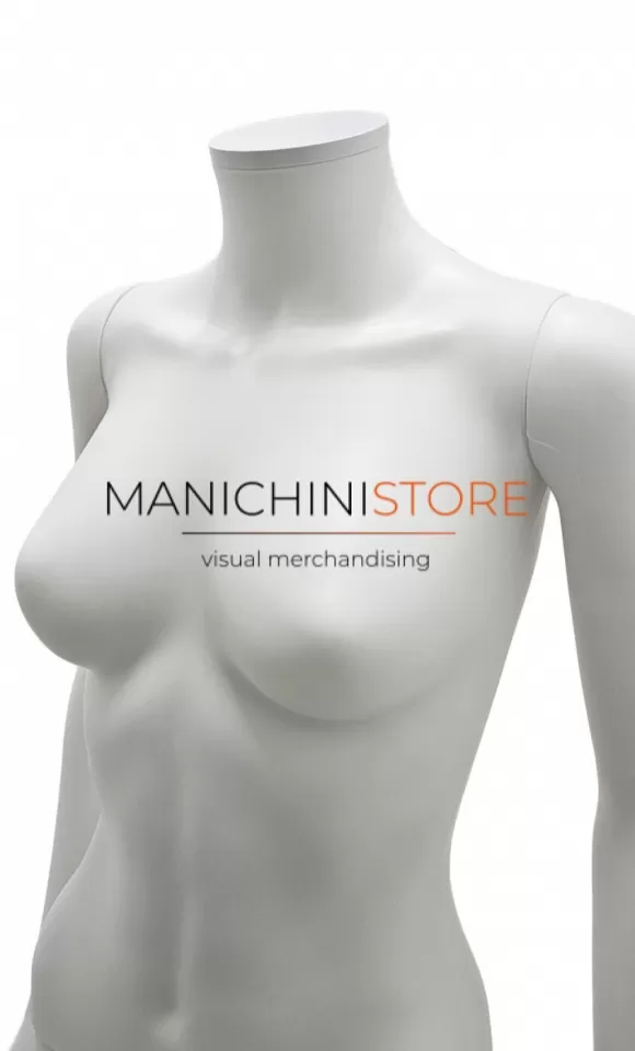 Bellissimo manichino donna realizzato interamente in plastica bianca riciclabile al 100%.
