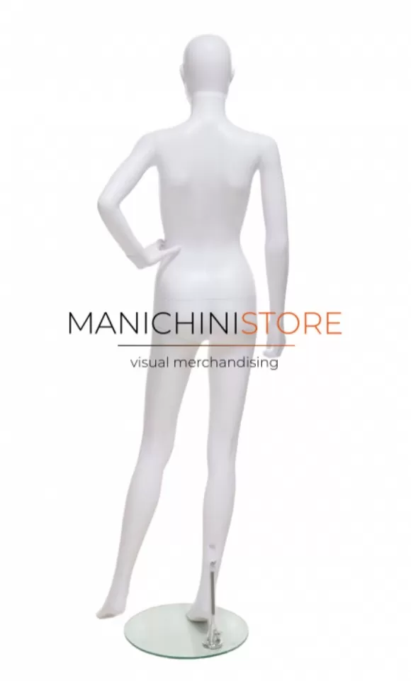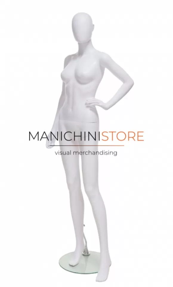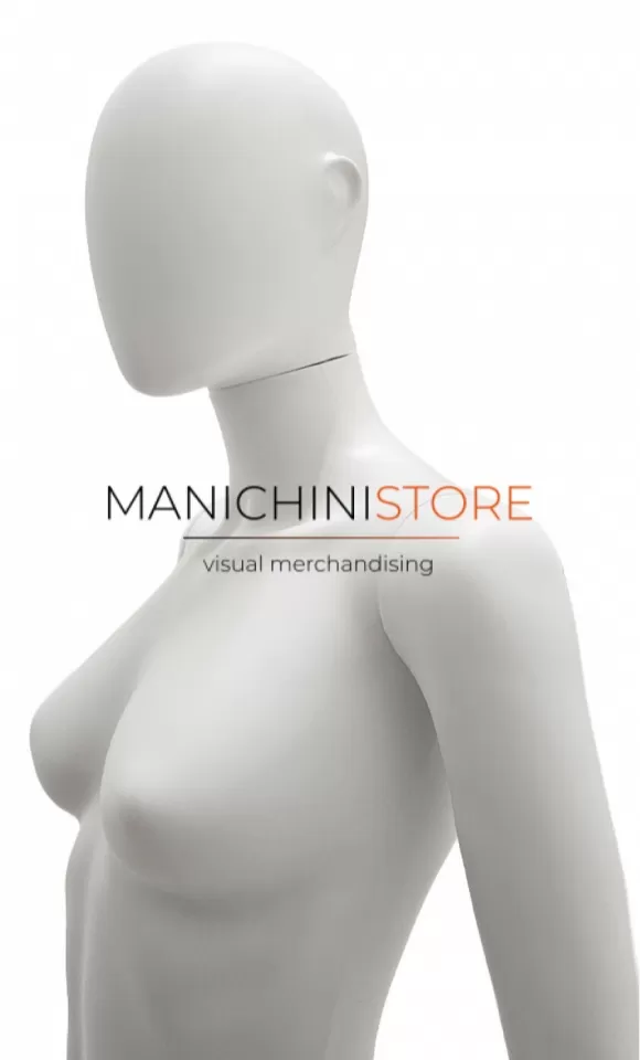 Bellissimo manichino donna realizzato interamente in plastica bianca riciclabile al 100%.