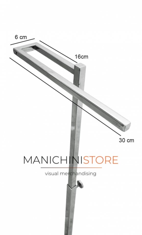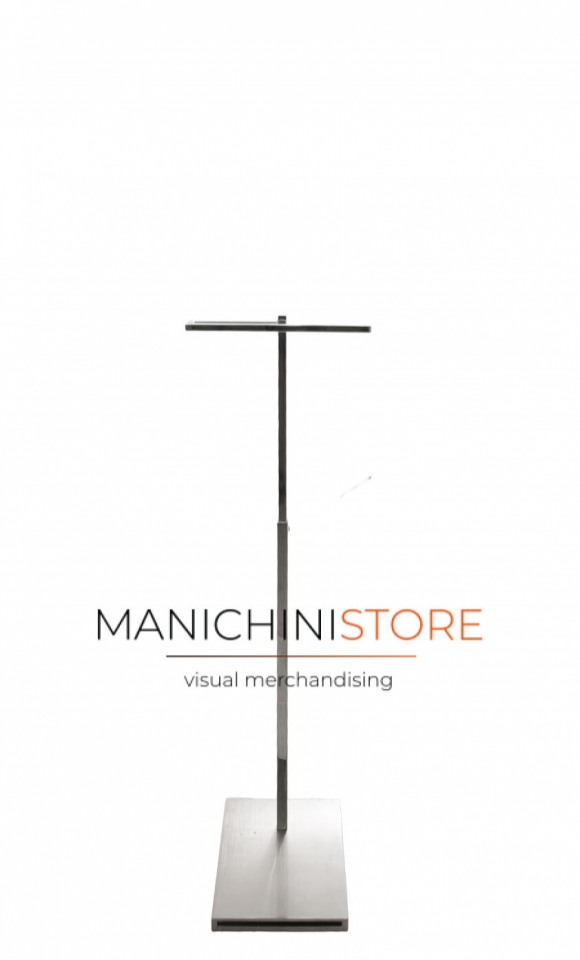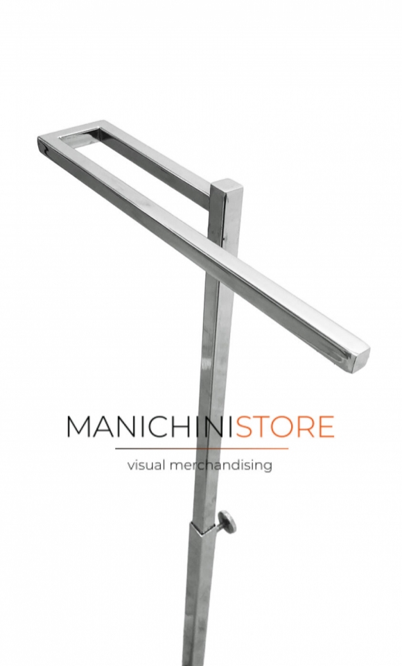 Funzionale piantana porta pantaloni in acciaio cromato.