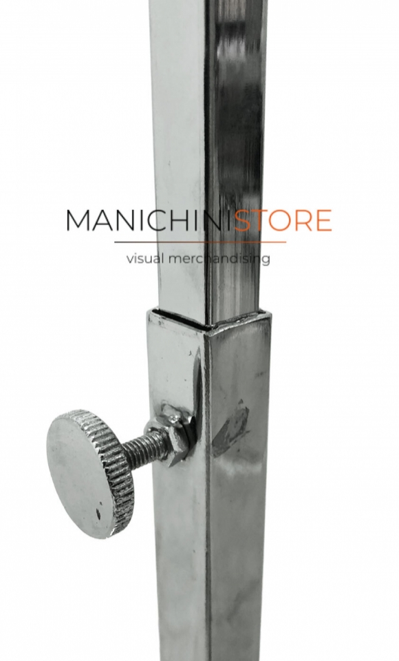 La piantana ha un'altezza fissa di 60 cm e può essere ulteriormente allungata di altri 35 cm. mentre la base misura 35x22 cm.