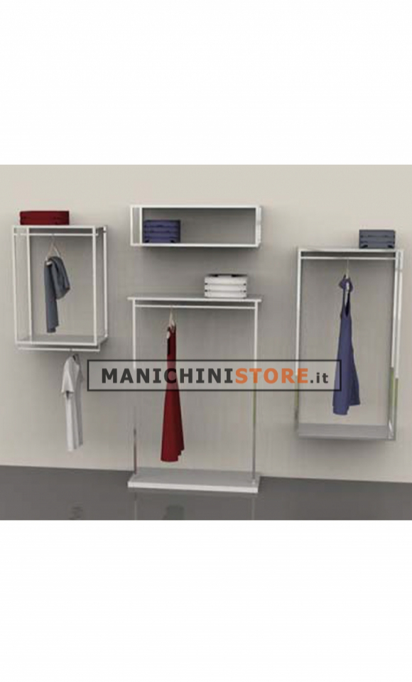 L'eleganza di questa composizione saprà donare al vostro negozio uno stile moderno ed esclusivo. La caratteristica del tubo quadro inoltre offre alla composizione un tocco in più di unicità.
