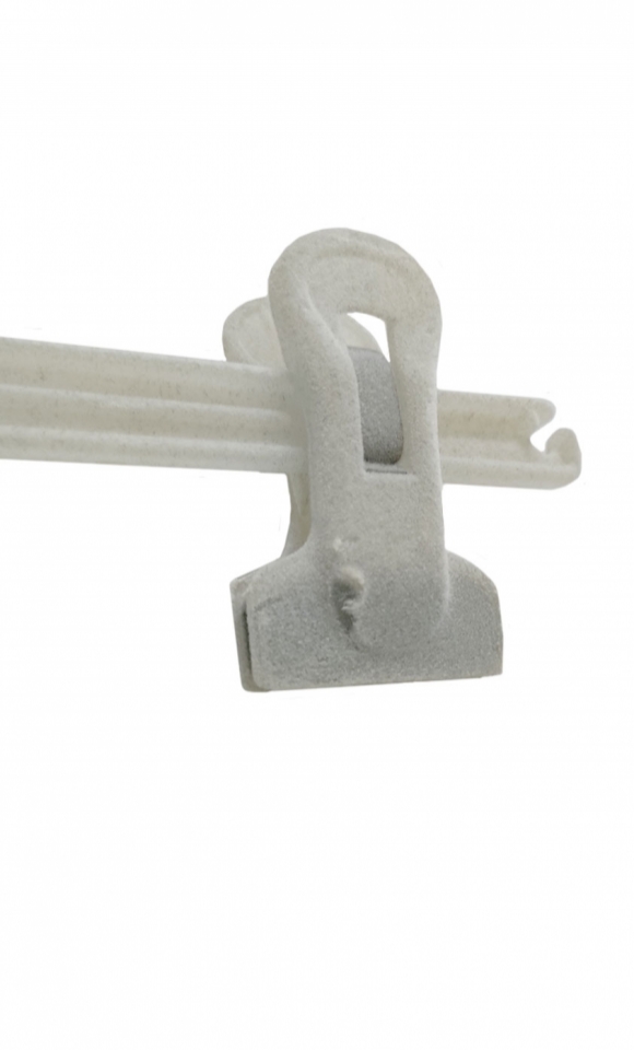 Lotto di 29 grucce con pinze in plastica trasparente rivestite con vellutazione color crema e color panna.
