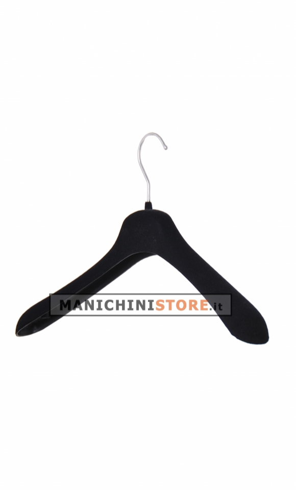 Pratica ed economica gruccia capospalla di fabbricazione Made in Italy rivestita in velluto nero.