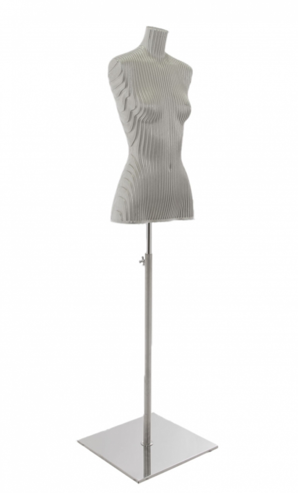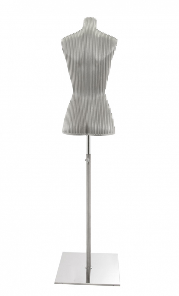 Il busto è provvisto di base quadrata in alluminio 39x39 cm. con asta regolabile in altezza.