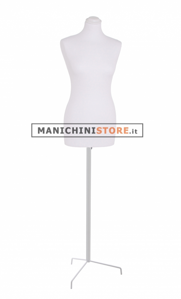 Busto sartoriale donna color Bianco di produzione Made in Italy realizzato in polistirolo per consentire una perfetta spillatura e un'ottima vestibilità.