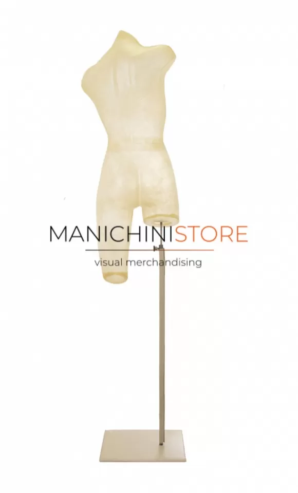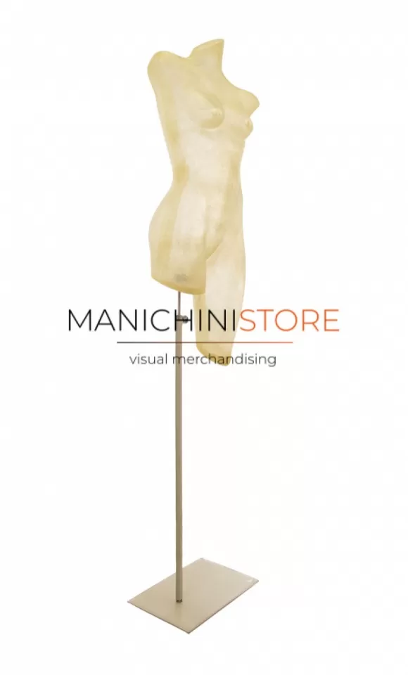 Bellissimo busto donna in resina naturale trasparente, di produzione totalmente Made in Italy, è realizzato e fornito di una base rivestita in vera pelle.