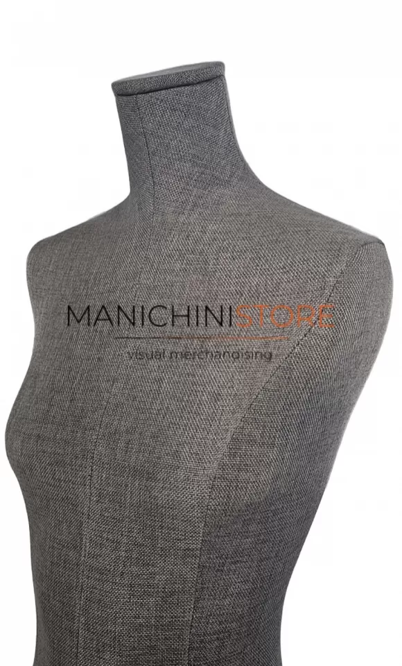 Busto donna made in Italy in vetroresina e rivestito in tessuto grigio.