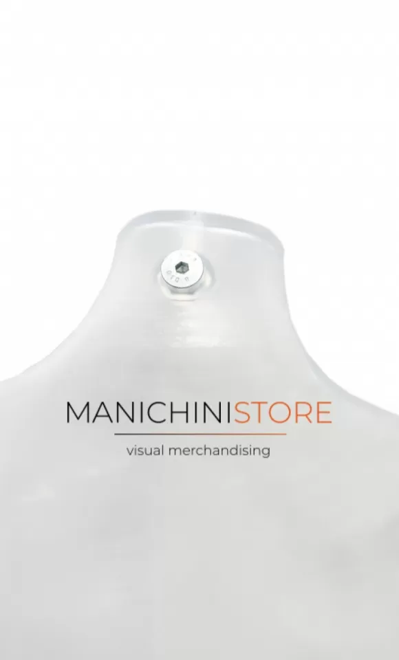 Busto torso donna di fabbricazione Made in Italy in soffiaggio plastico trasparente opale particolarmente robusto e resistente agli urti.