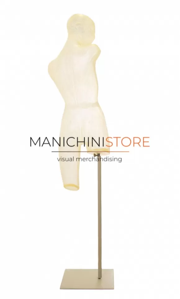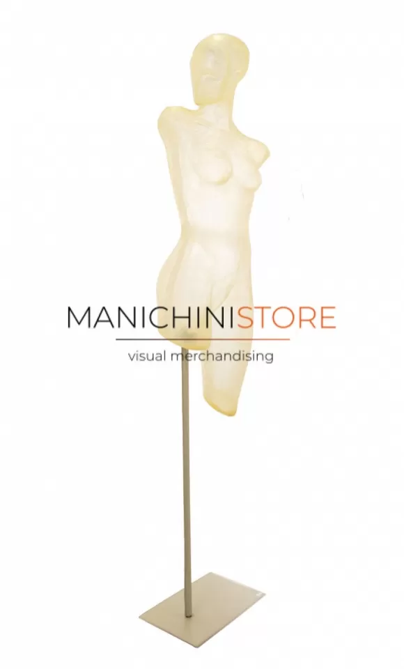 Bellissimo busto donna in resina naturale trasparente, di produzione totalmente Made in Italy, è realizzato e fornito di una base rivestita in vera pelle.