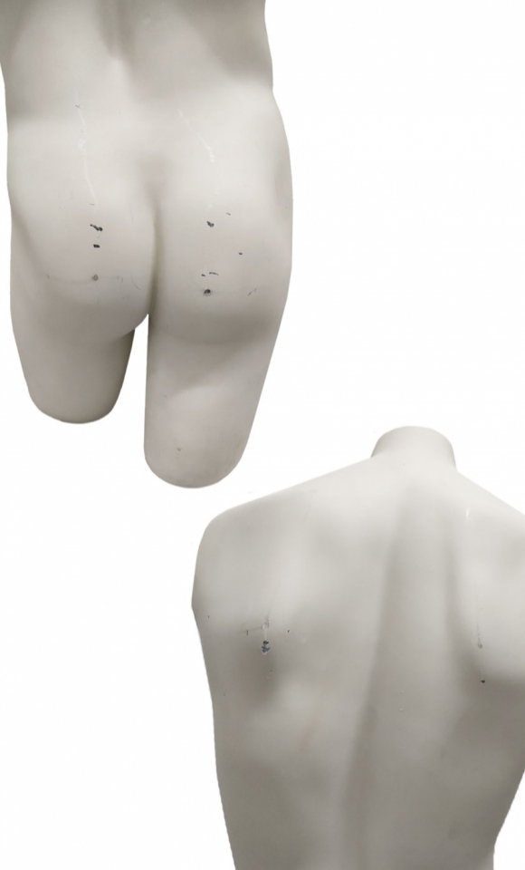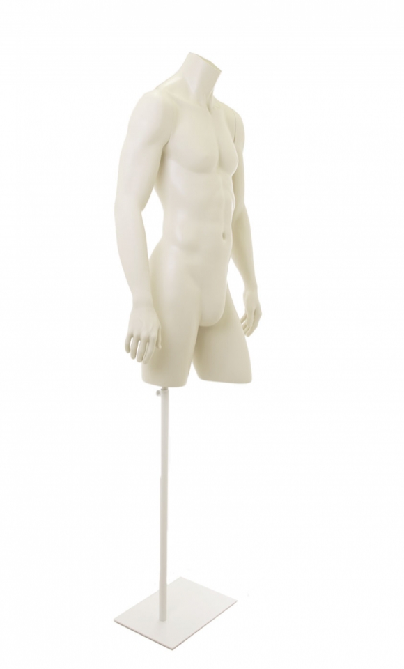 Busto torso uomo completo di braccia realizzato in vetroresina verniciato color bianco opaco.