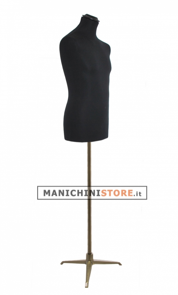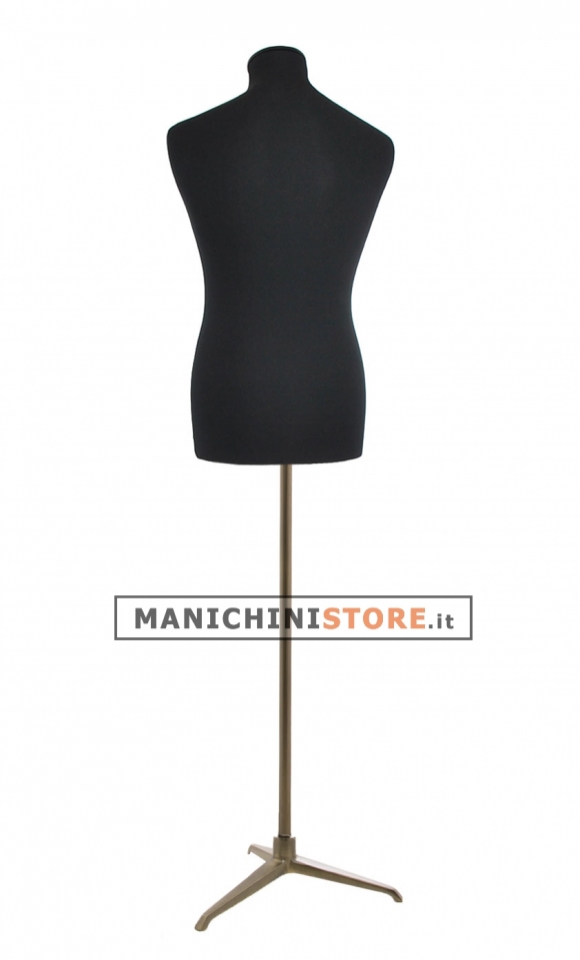 Il busto, regolabile in altezza da un minimo di 170 a un massimo di 190 cm è dotato di una raffinata base treppiede in bronzo, inoltre è completo di terminale in legno e ricoperto con una maglina nera in cotone elasticizzato lavabile in lavatrice.