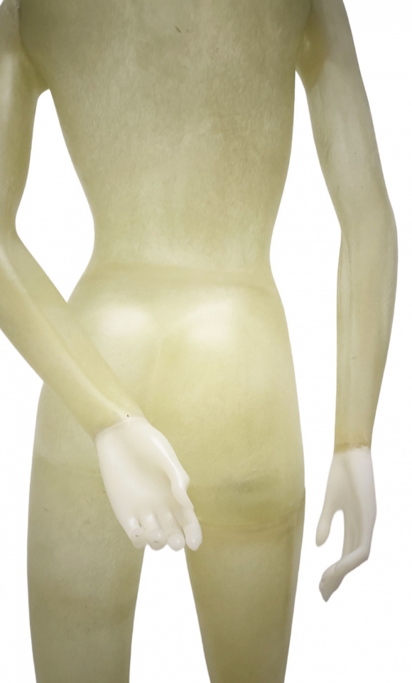 Attenzione: il manichinino è al grezzo e deve essere verniciato, la base presenta impefezioni, vedi immagini di dettaglio.
