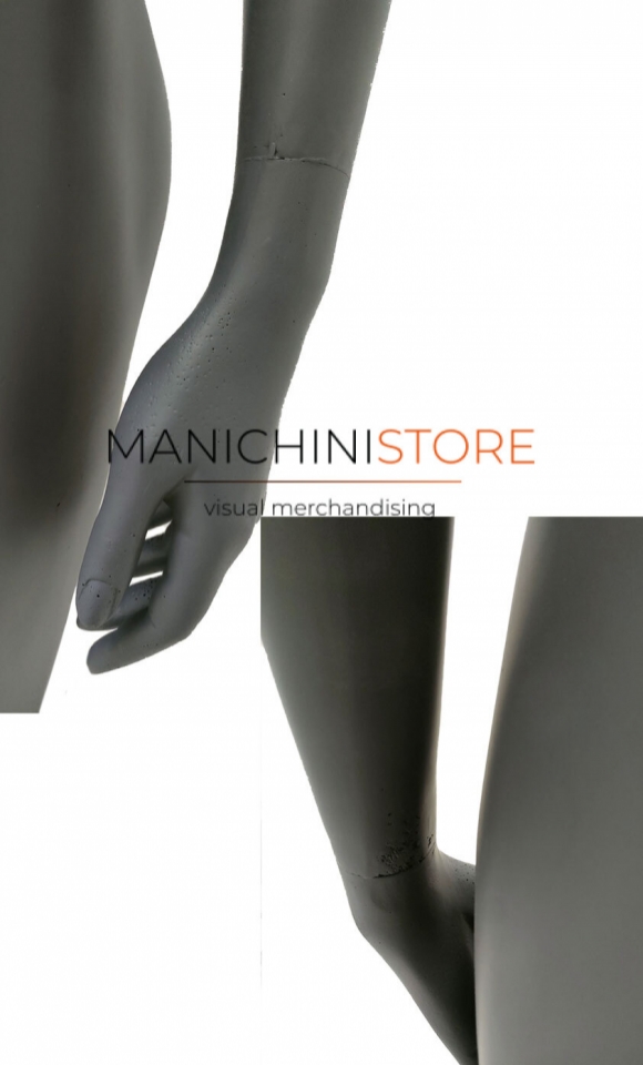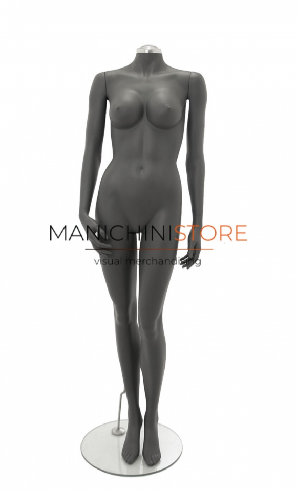 Splendido manichino donna senza testa in vetroresina verniciato grigio, dalla corporatura sensuale e ben definita.