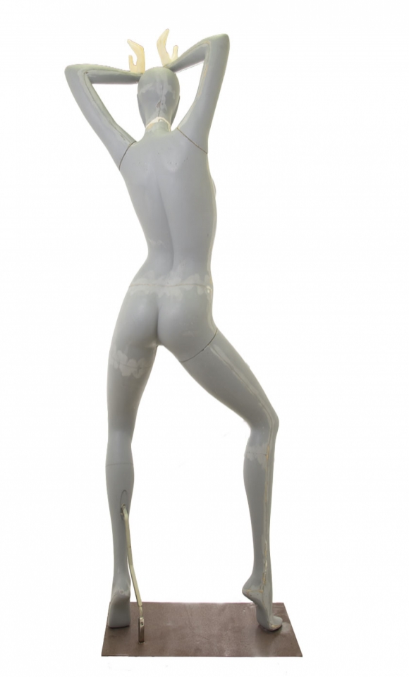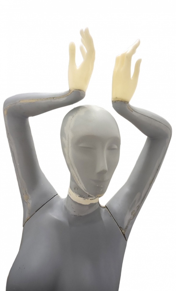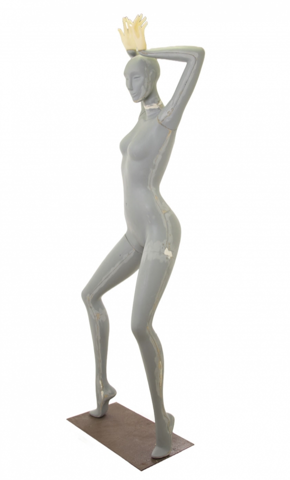 Manichino donna in vetroresina grezza DA VERNICIARE con base 62x34 cm in metallo grezzo DA VERNICIARE.
