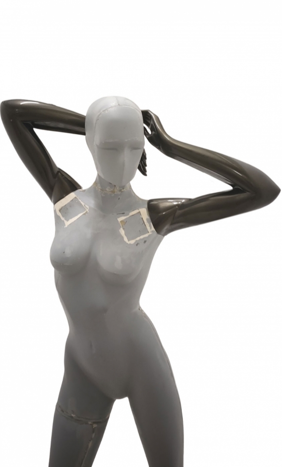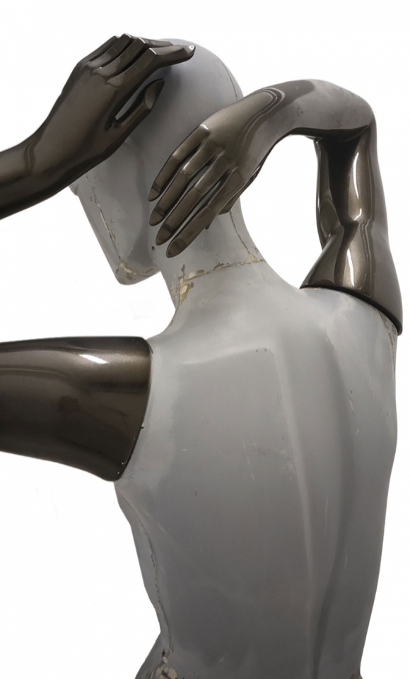 Le braccia del manichino sono verniciate con una vernice metallizzata marrone scuro.