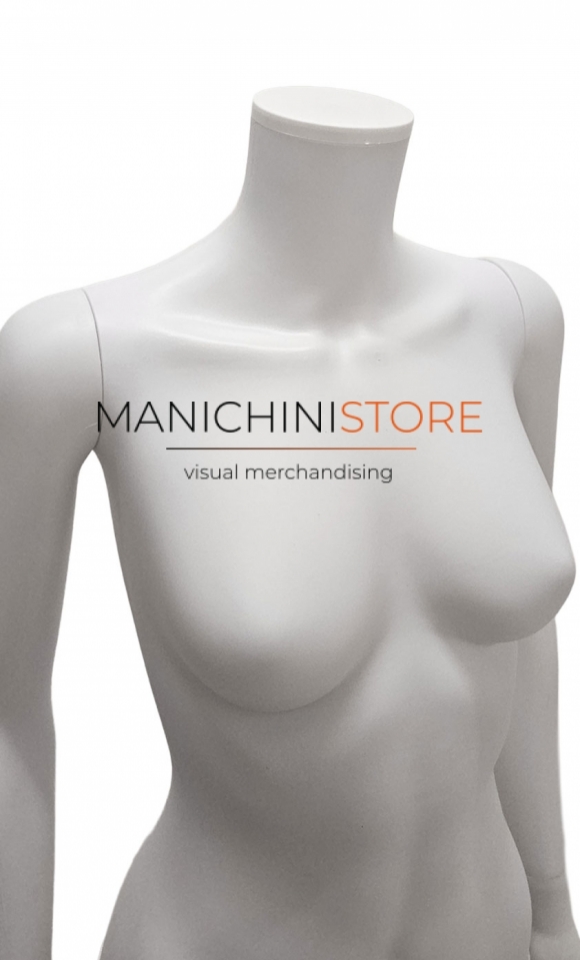 Bellissimo manichino donna realizzato interamente in plastica bianca riciclabile al 100%.